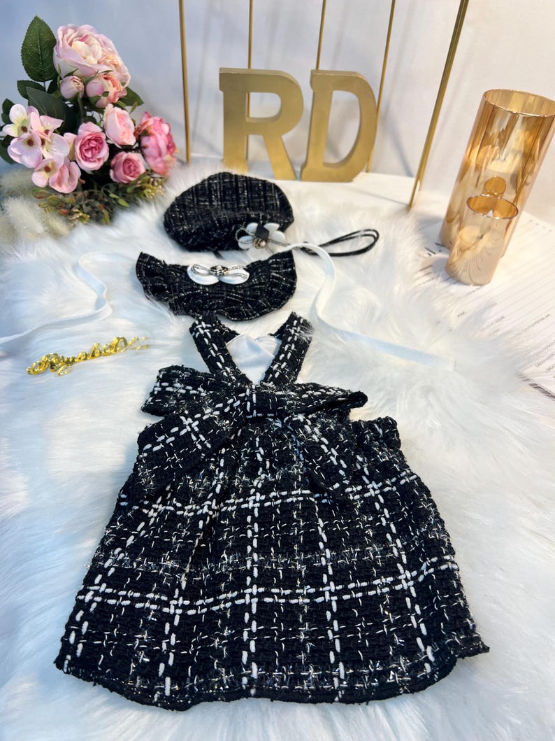 Cozy Vintage Tweed Dress with Charming Collar & Cute Beret, Dog Dresses, puppy clothes, girl Dog accessorius, small Dog clothes, dog outfit