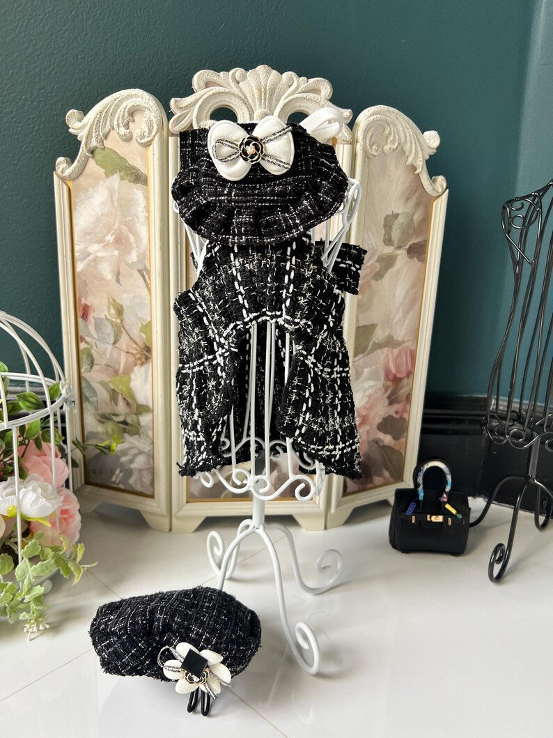 Fashionable Tweed Dress with Stunning Collar & Trendy Beret, Dog Dresses, puppy clothes, girl Dog accessorius, small Dog clothes, dog outfit