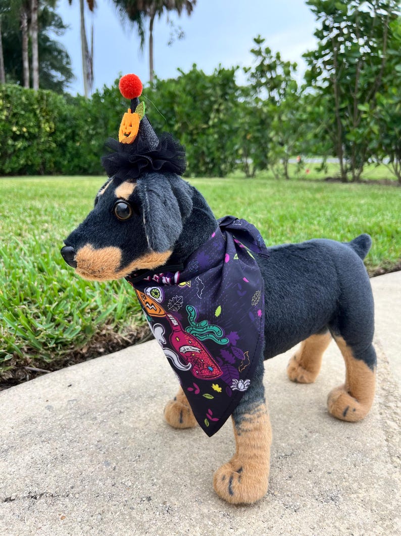 Get your furry friend ready for Halloween with this adorable Matching Halloween Bandana and Pet Hat set! Perfect for adding a spooky touch to your pet's outfit. Handmade with high-quality materials for a comfortable fit. Great for photoshoots and trick-or-treating! Trick or treat in style with this festive Halloween Bandana and Pet Hat combo! This spooky set is handcrafted with love and attention